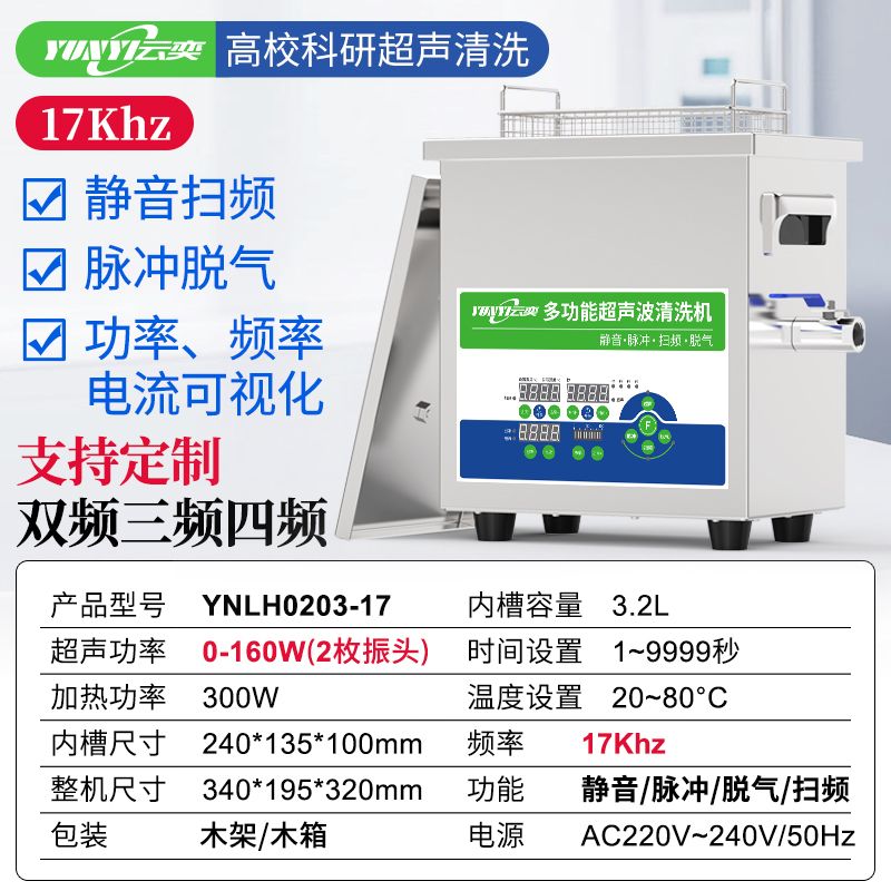云奕17khz实验室超声波清洗器3.2L污水处理降解有机物YNLH0203-17
