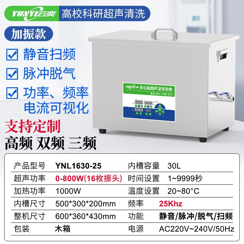 云奕30L实验室超声波清洗机25khz污水站科研研究所检测专用YNL1630-25