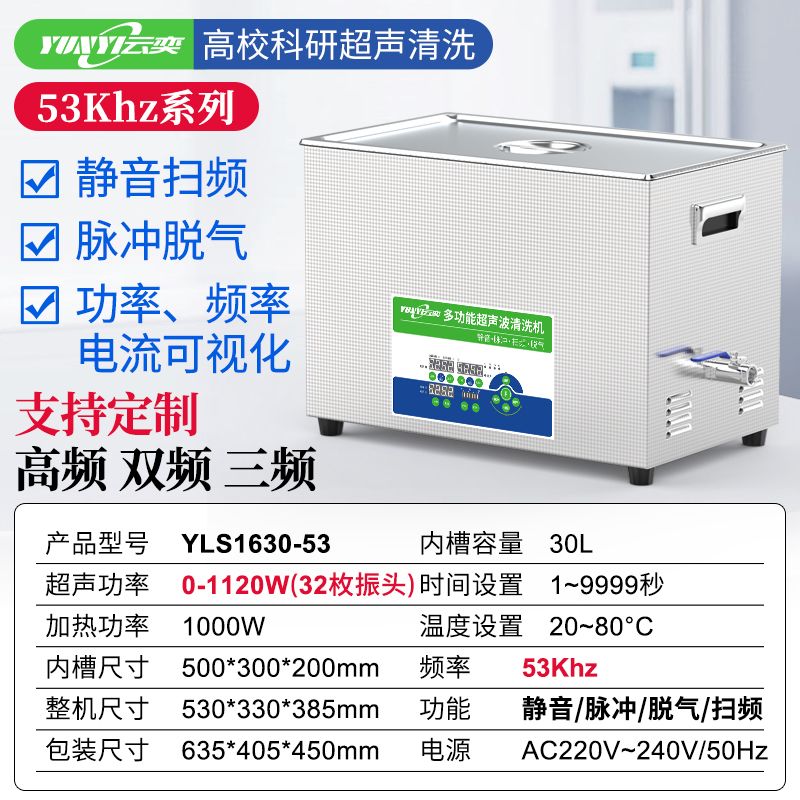 云奕超声53khz实验室超声波清洗机30L加速中药萃取YLS3230-53