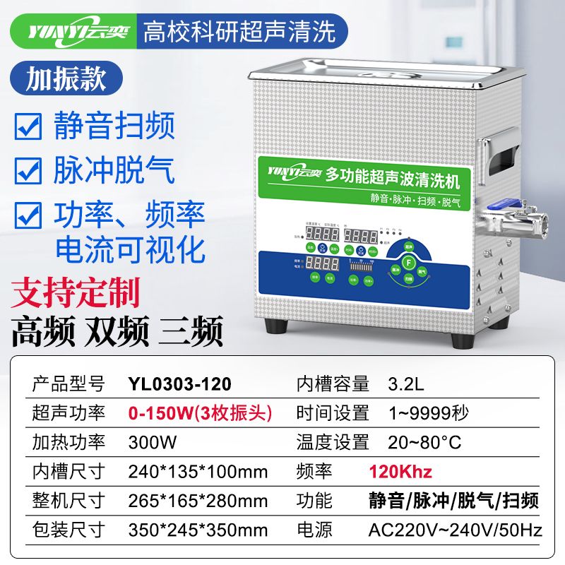 云奕超声120khz实验室超声波清洗机3.2L清洗光纤玻璃丝YL0303-120