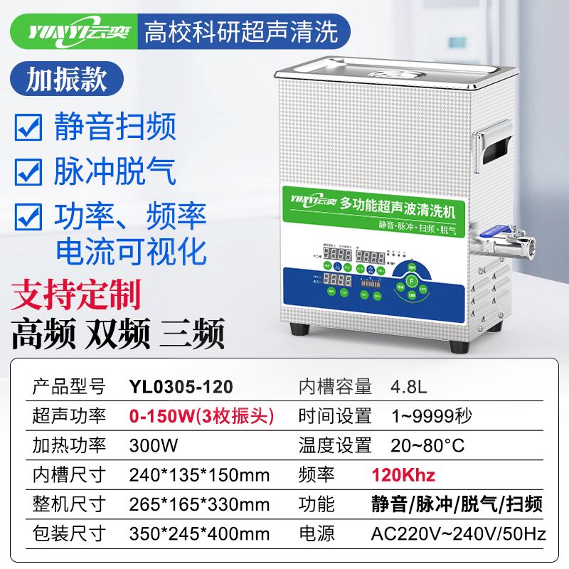 云奕超声120KHZ超声波清洗机实验室用4.8L静音扫频脉冲脱气YL0305-120
