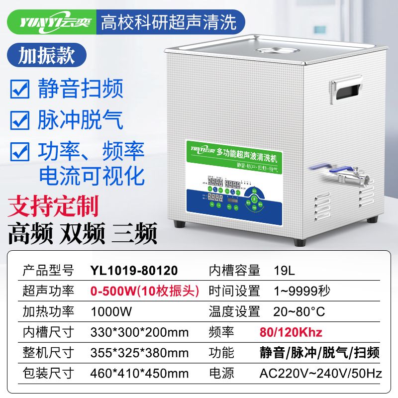 云奕19L双频实验室超声波清洗机80K 120K频率功率可调YL1019-80120