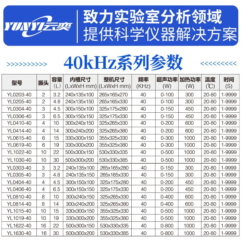 云奕30L超声波清洗器实验室用40KHZ玻璃纳米片防团聚YL1630-40
