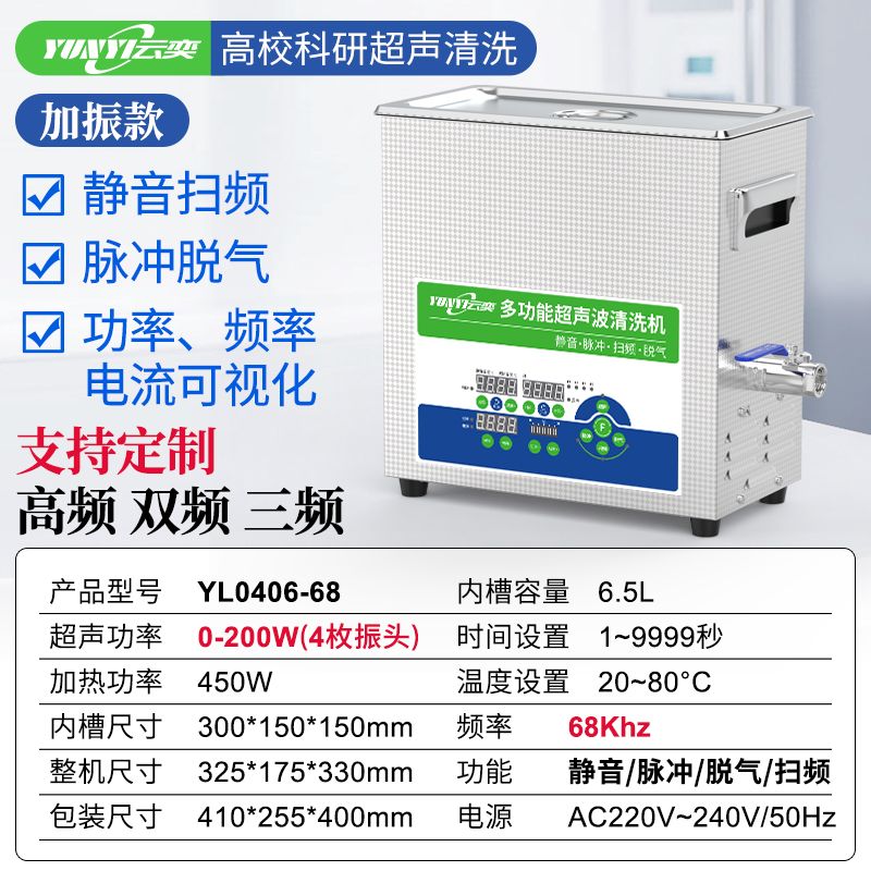 - 云奕超声68KHZ实验室超声波清洗机6.5L萃取破壁植物细胞YL0406-68