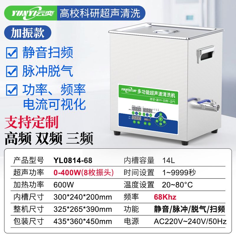 云奕超声14L实验室超声波清洗机68khz高校分散混匀新材料合成YL0814-68